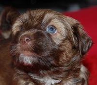 B-Lokus: Er macht unsere Tibis liver,braun/chocolate/chocolate&tan, und zwar sind auch die Nase, die Lefzen, Ballen usw. braun. Auch die Augen sind aufgehellt. Sie können in der ersten Wochen grün sein, werden dann aber meistens Bernsteinfarben. (Bsp.siehe Fotos weiter unten). Wie beim E-Lokus müssen beide Eltern mindestens Anlageträger sein, um die Farbe zu vererben. B/B: Der Hund ist nicht braun/chocolate,und vererbt es auch nicht